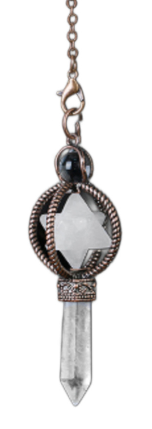 Křemen Merkaba kyvadlo + čirý křemen + bronz, přívěsek z přírodního kamene 7,7 cm, řetízek cca 26,5 cm