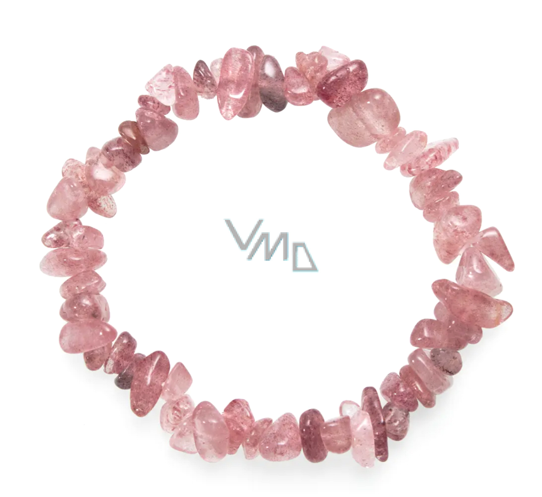 Křemen růžový / jahodový náramek elastický sekaný přírodní kámen 19 cm, nejdokonalejší léčitel