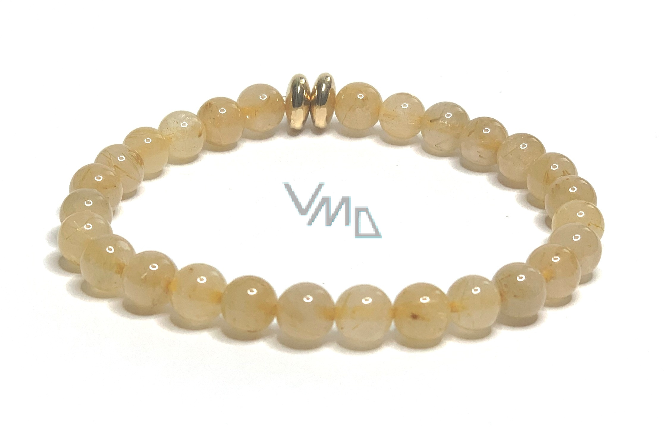 Křemen s Rutilem zlatý náramek elastický přírodní kámen, kulička 6 mm / 16 - 17 cm, nejdokonalejší léčitel