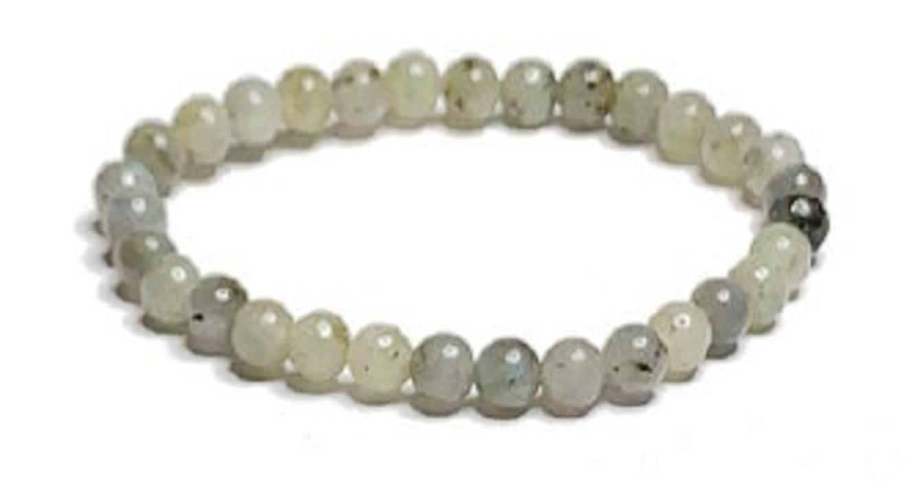 Labradorit karkötő rugalmas természetes kő, 6 mm-es golyó / 16 - 17 cm, átalakulás köve