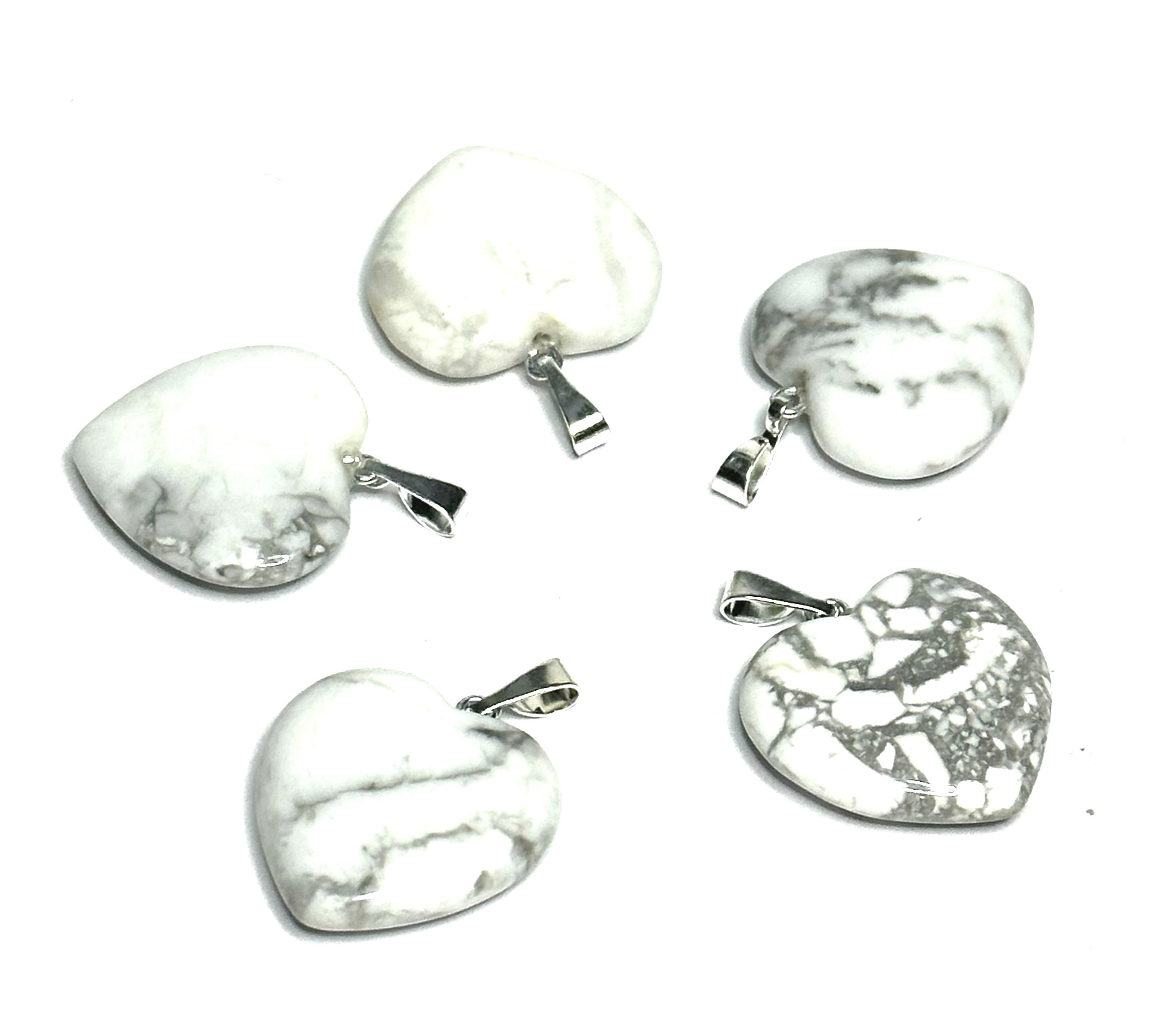 Magnezit / Howlit bílý Srdce přívěsek přírodní kámen 20 mm, očistný kámen