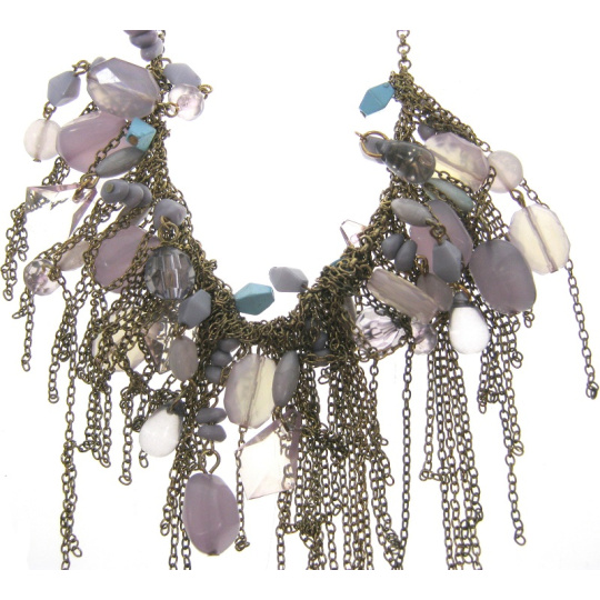 Bronz nyaklánc kristályokkal és kövekkel, 40 cm