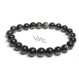 Obszidián arany karkötő rugalmas természetes kő, 8 mm-es golyó / 16 - 17 cm, megmentő kő