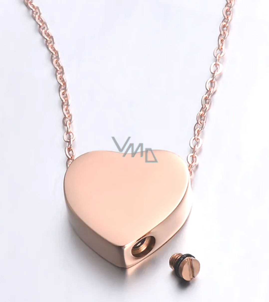 Pamětní, pietní urnový přívěsek, Srdce růžové zlato voděodolné, nerezová ocel