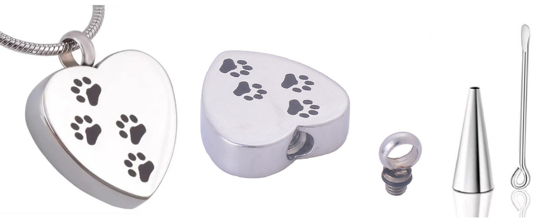 Pamětní, pietní urnový přívěsek, Srdce tlapky, nerezová ocel 20 x 25 mm