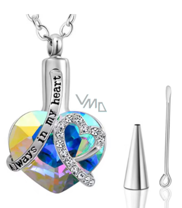 Pamětní, pietní urnový přívěsek, Srdce, voděodolné, nerezová ocel modré - Navždy v tvém srdci, 20 x 30 mm