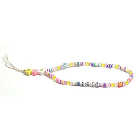 Přívěsek na mobilní telefon proti ztrátě s korálky, smajlík, love, obvod 26,5 cm