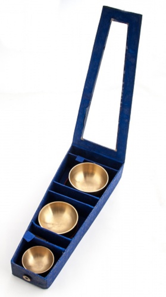 Tyto mísy jsou ručně vyrobené v Nepálu. Balení obsahu 3 kusy tibetských mis, 3 kusy podložek pod mísy, 3 kusy paliček. Všechno ku Vám zaslané v pěkném modrém dárkovém balení.