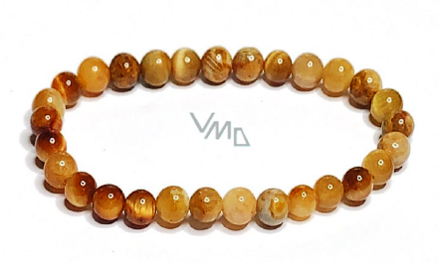 Tigrisszem sárga karkötő rugalmas természetes kő, 6 mm-es golyó / 16 - 17 cm, a nap és a föld köve, szerencsét és gazdagságot hoz