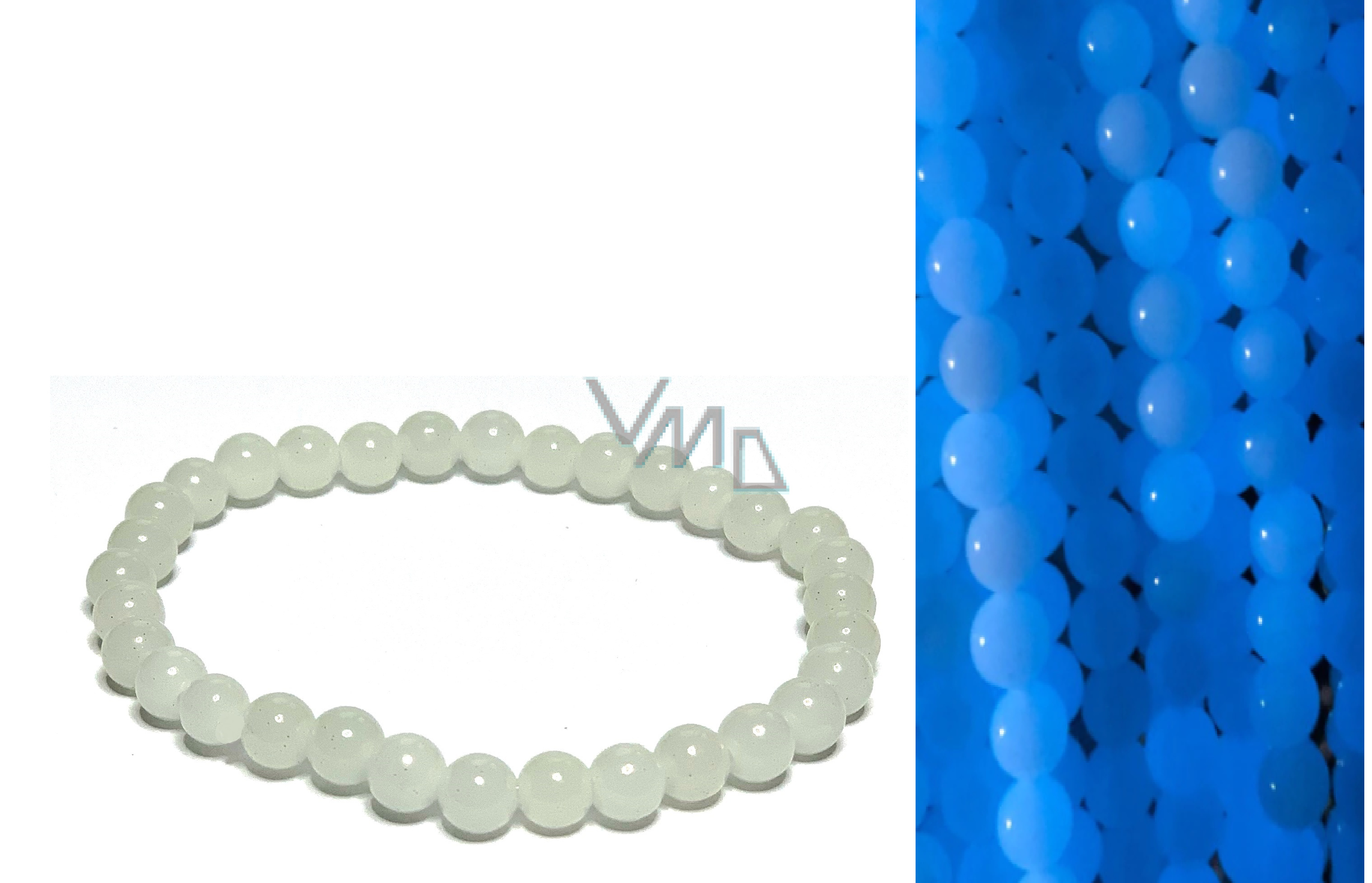 Jade Luminois Light Fosforeskující, modře svítí ve tmě, náramek elastický přírodní kámen, kulička 6 mm / 16 - 17 cm