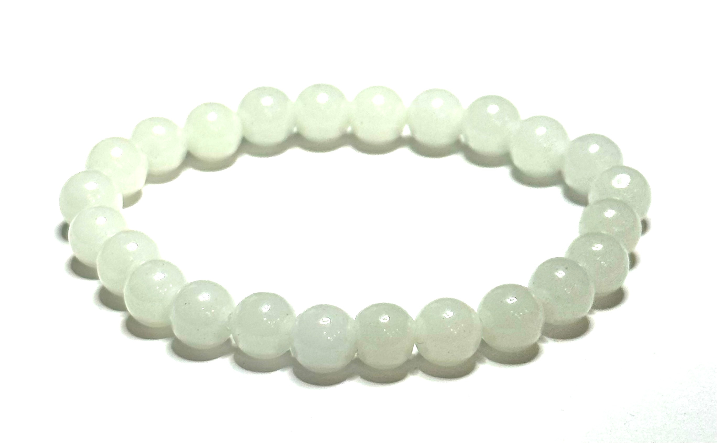 Jade Luminois Light Fosforeskující, modře svítí ve tmě, náramek elastický přírodní kámen, kulička 8 mm / 16 - 17 cm