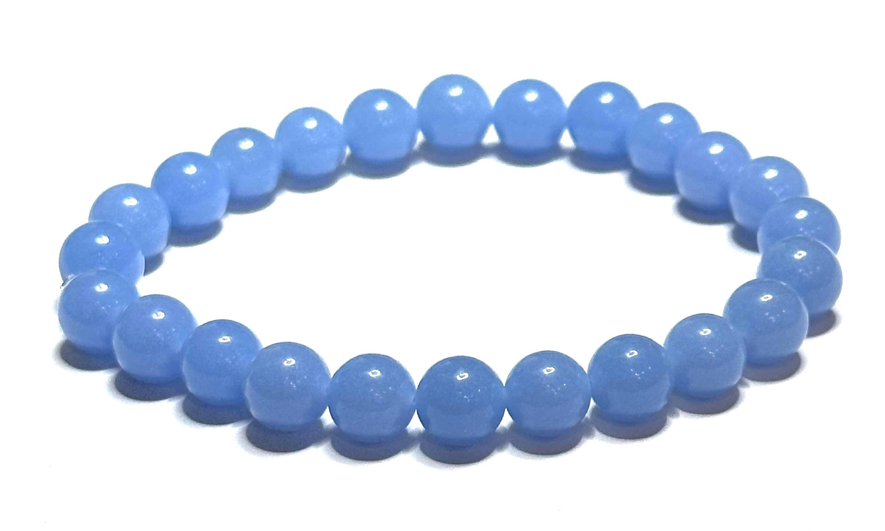 Popis Jade Luminois Light Fosforeskující, modře svítí ve tmě, náramek elastický přírodní kámen, kulička 8 mm / 16 - 17 cm