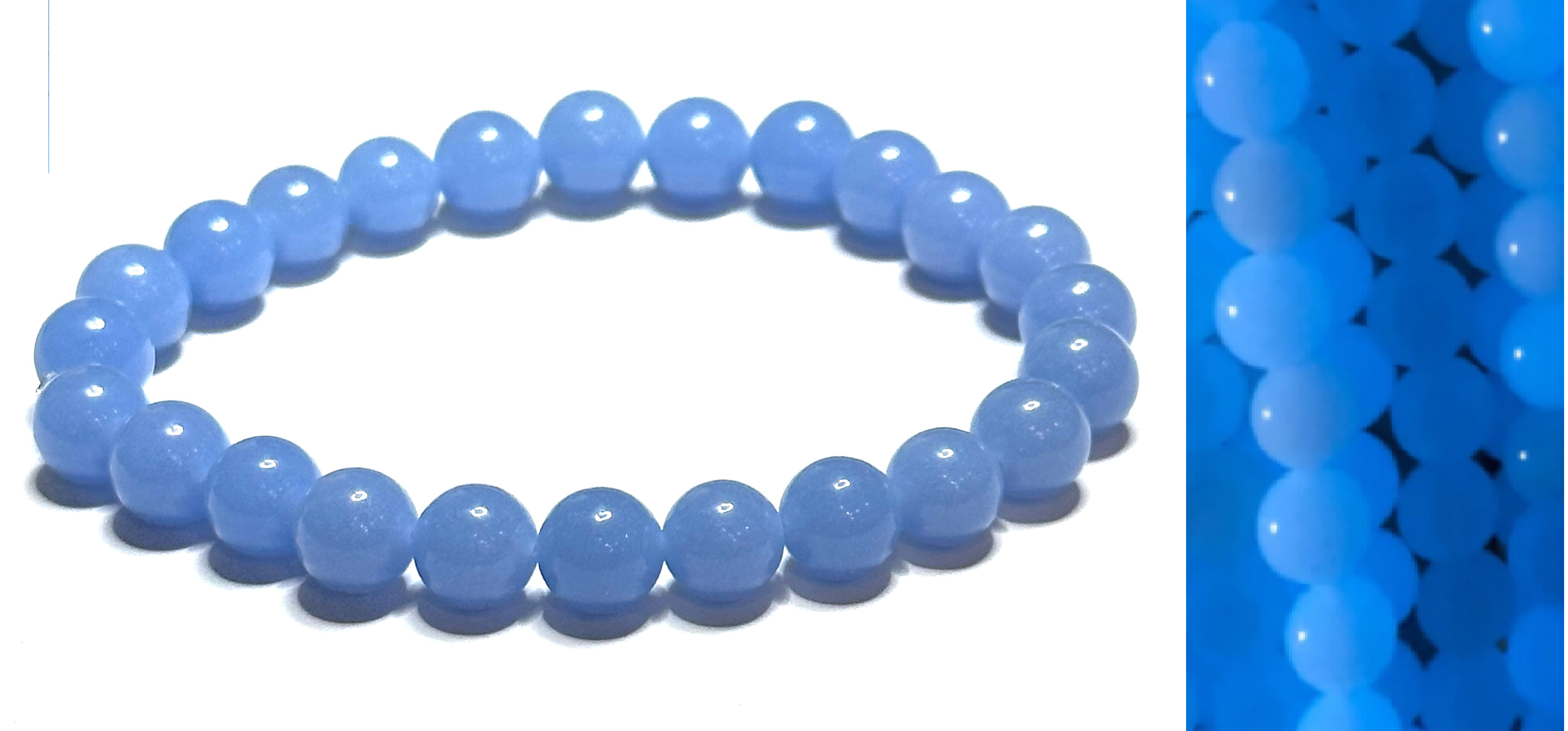 Jade Luminois Light Fosforeskující, modře svítí ve tmě, náramek elastický přírodní kámen, kulička 8 mm / 16 - 17 cm