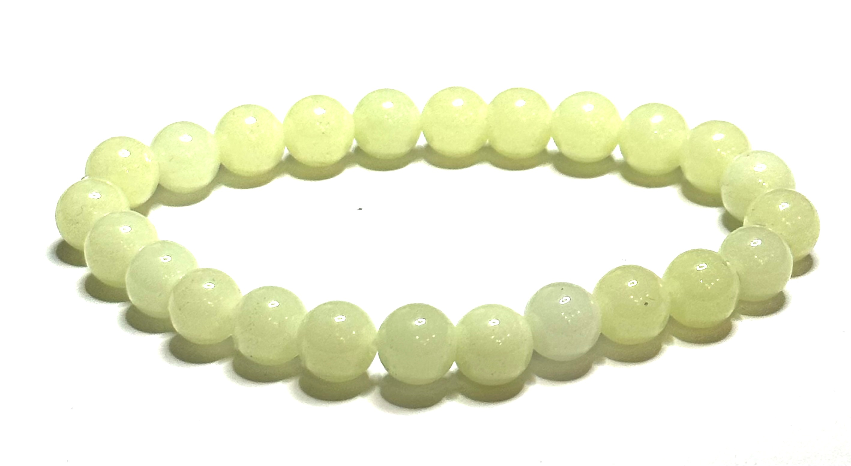 Popis Jade Luminois Light Fosforeskující, žlutě svítí ve tmě, náramek elastický přírodní kámen, kulička 8 mm / 16 - 17 cm
