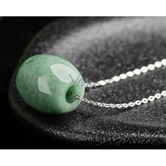 Jadeit Barmský zelený přírodní kámen korálek na kůži 1,5 x 1,4 cm, láska štěstí