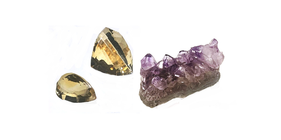 - Držte ametyst v jedné ruce a citrín v druhé.