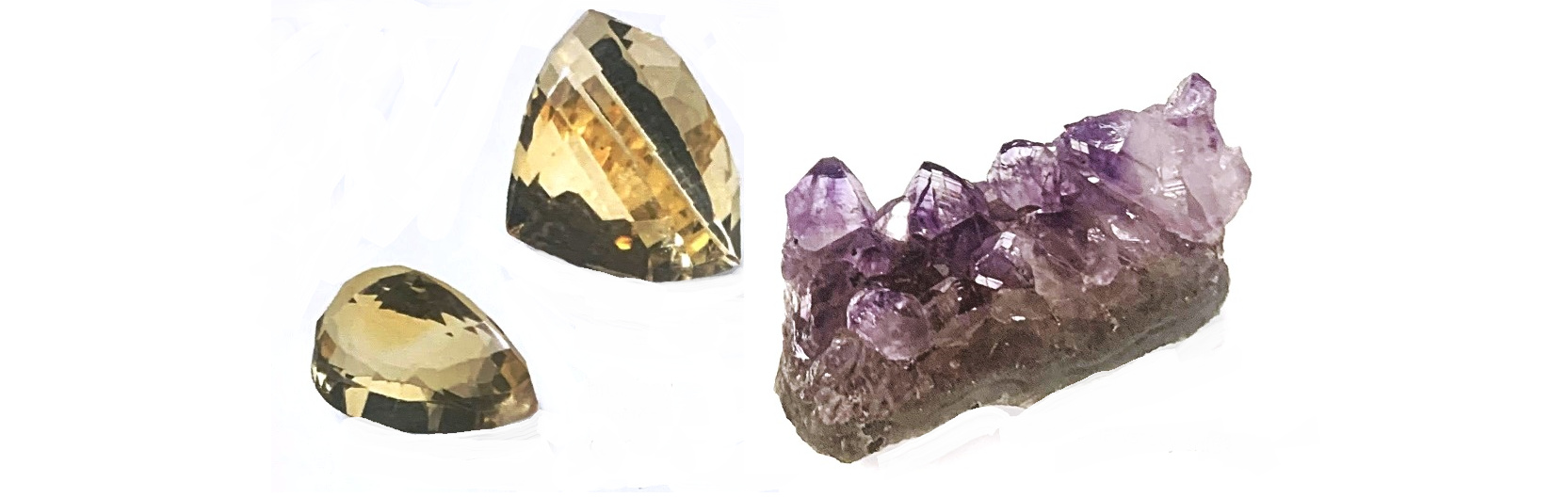 - Držte ametyst v jedné ruce a citrín v druhé.
