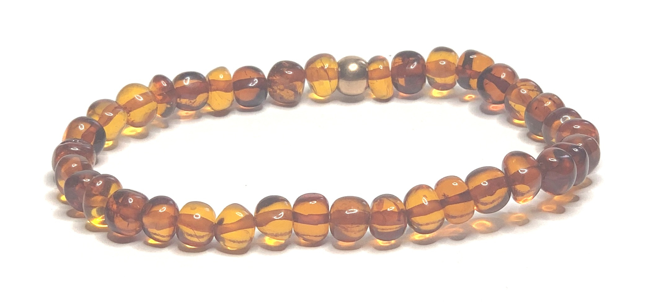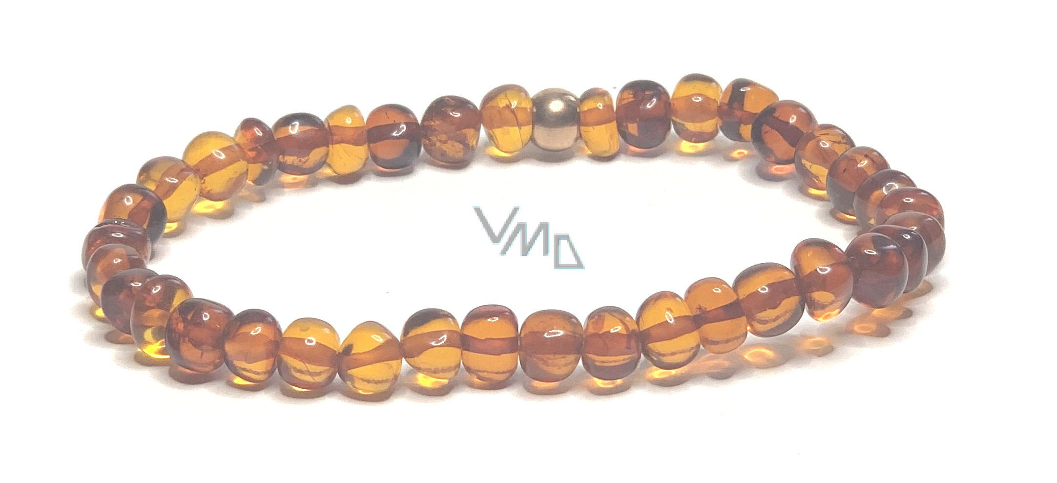 Jantar Baltský koňakový náramek elastický přírodní, nugerka nepravidelná cca 5 mm / 16 - 17 cm, ztuhlé sluneční světlo