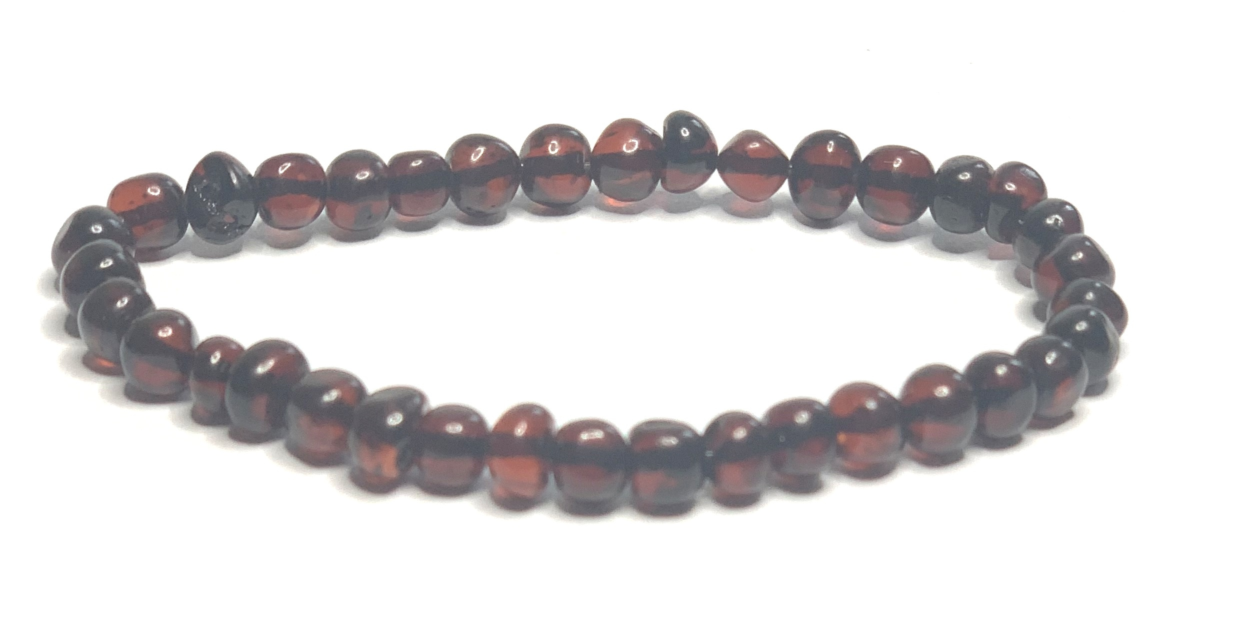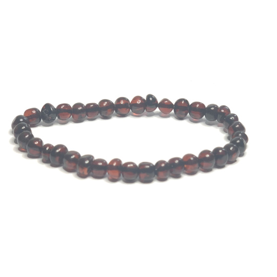 Jantar Baltský koňakový tmavý náramek elastický přírodní, nugerka nepravidelná cca 5 mm / 16 - 17 cm, ztuhlé sluneční světlo