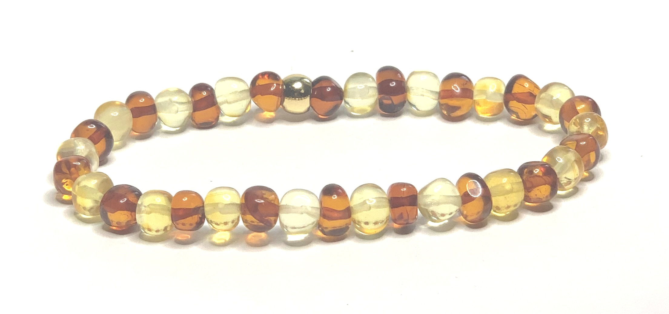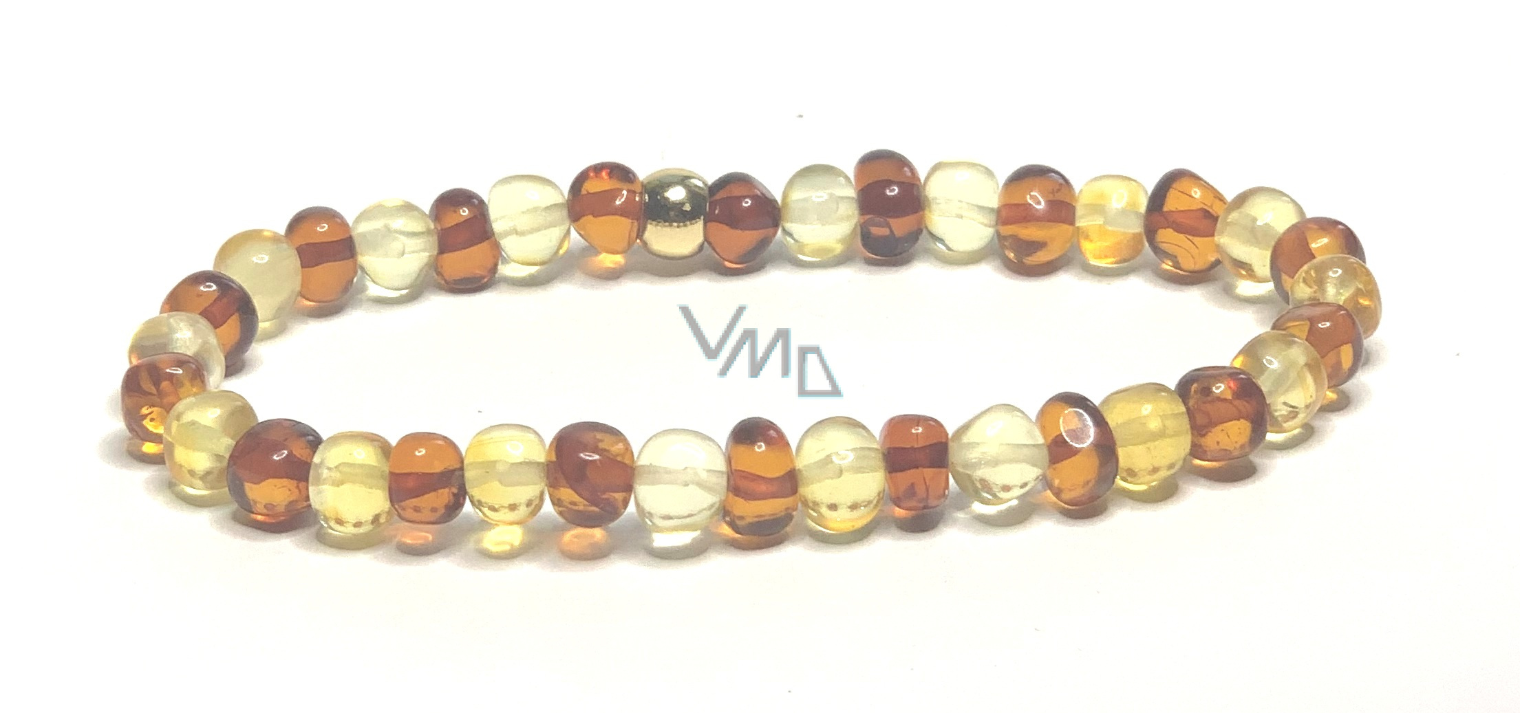 Jantar Baltský koňakový / zlatý náramek elastický přírodní, nugerka nepravidelná cca 5 mm / 16 - 17 cm, ztuhlé sluneční světlo