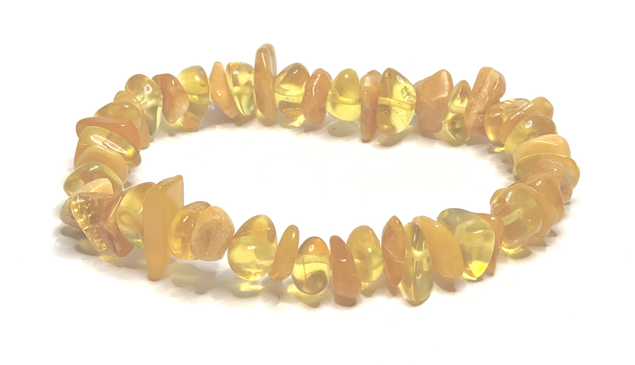Jantar Baltský medový / zlatý náramek elastický sekaný přírodní, 16 - 17 cm, ztuhlé sluneční světlo