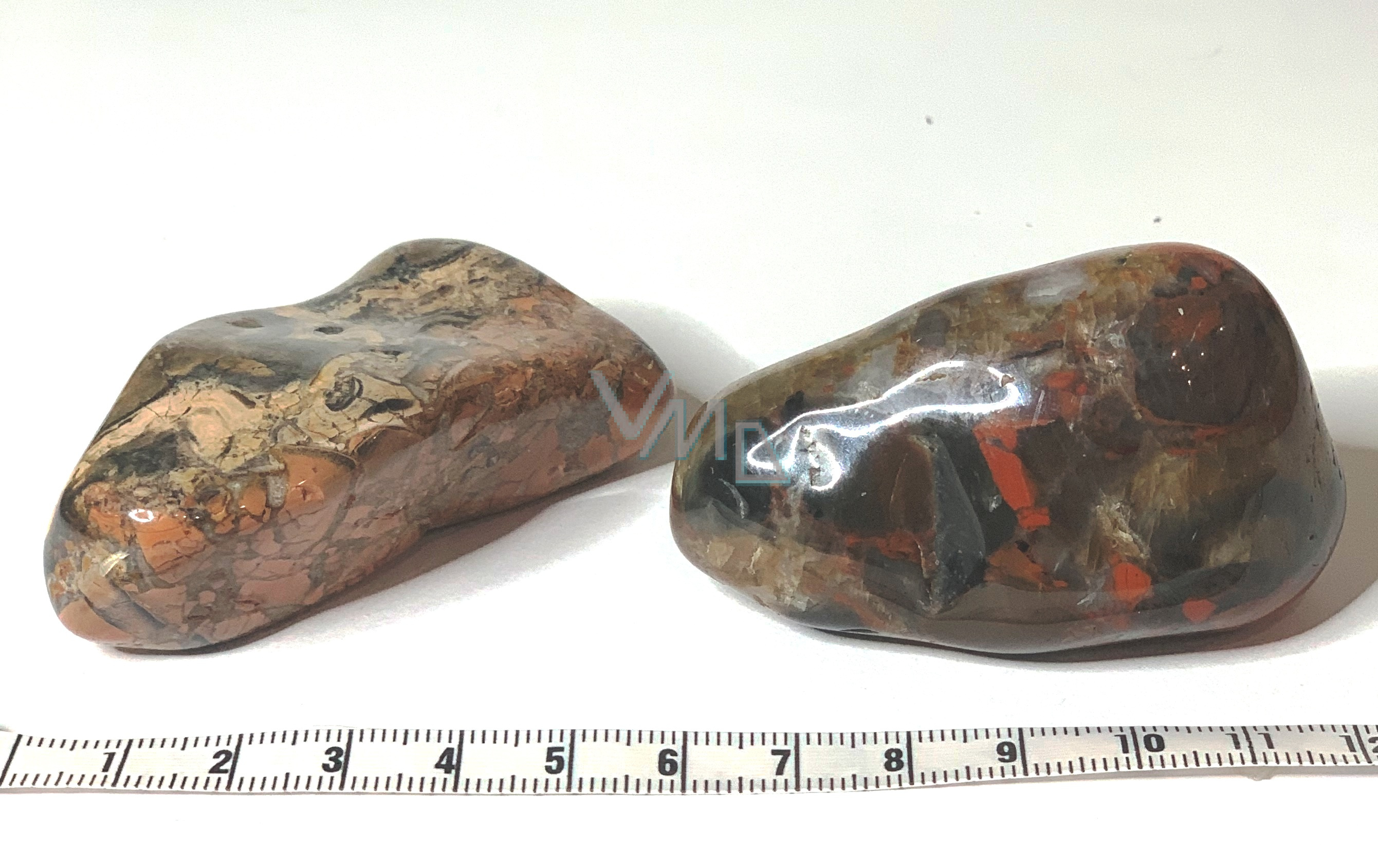 Unikátnost kamene: Brekciový jaspis s červeným nádechem je velmi oblíbeným druhem. Strukturu kamene tvoří drobné úlomky barevných jaspisů v různých geometrických tvarech, které byly dodatečně stmeleny křemennou nebo opálovou hmotou. Vznikají tak nádherné obrazce červenožlutých odstínů, často orámované bílou konturou.