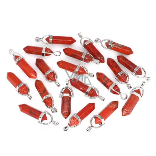 Jaspis červený kyvadlo šestihran přívěsek přírodní kámen 41 x 13 mm, kámen úplné péče