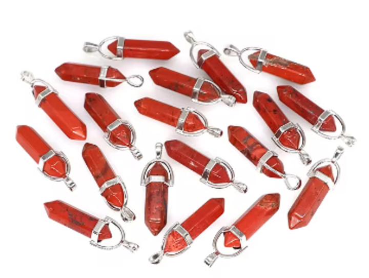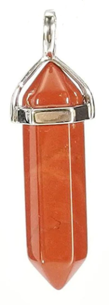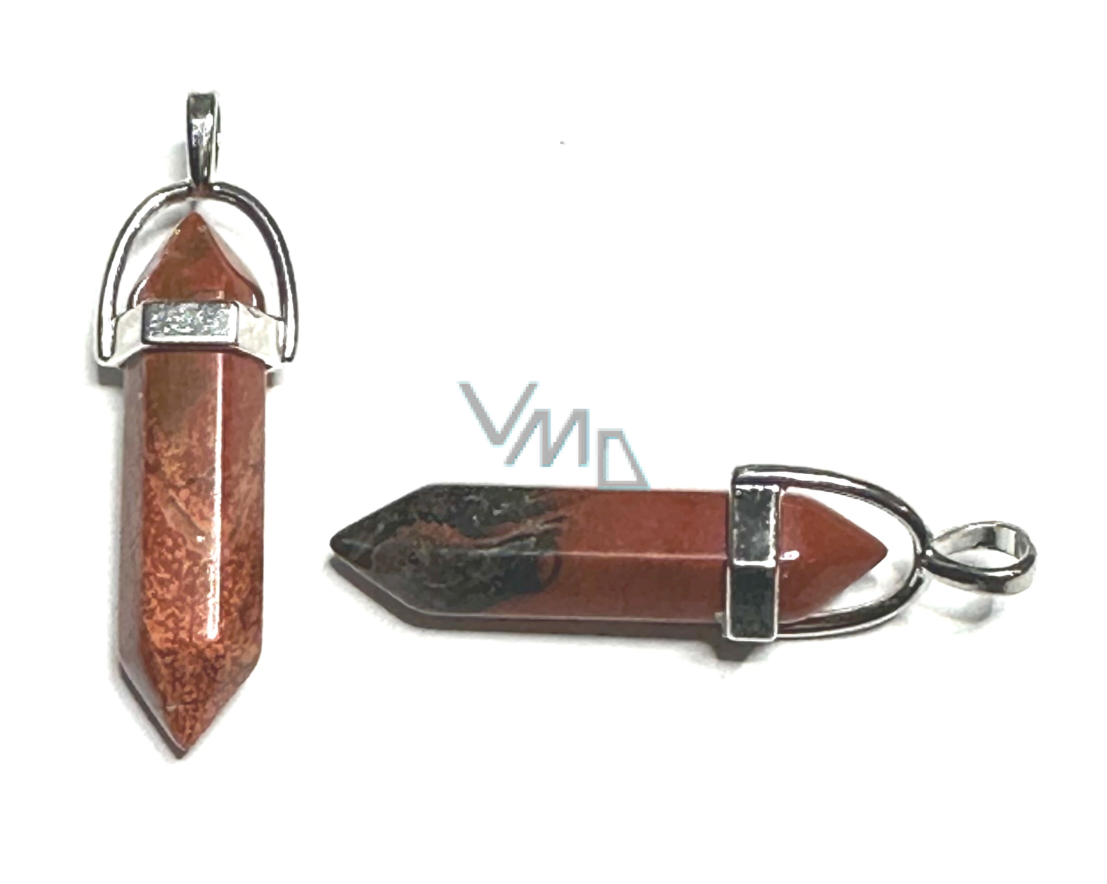 Jaspis červený kyvadlo šestihran přívěsek přírodní kámen 41 x 13 mm, kámen úplné péče