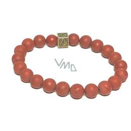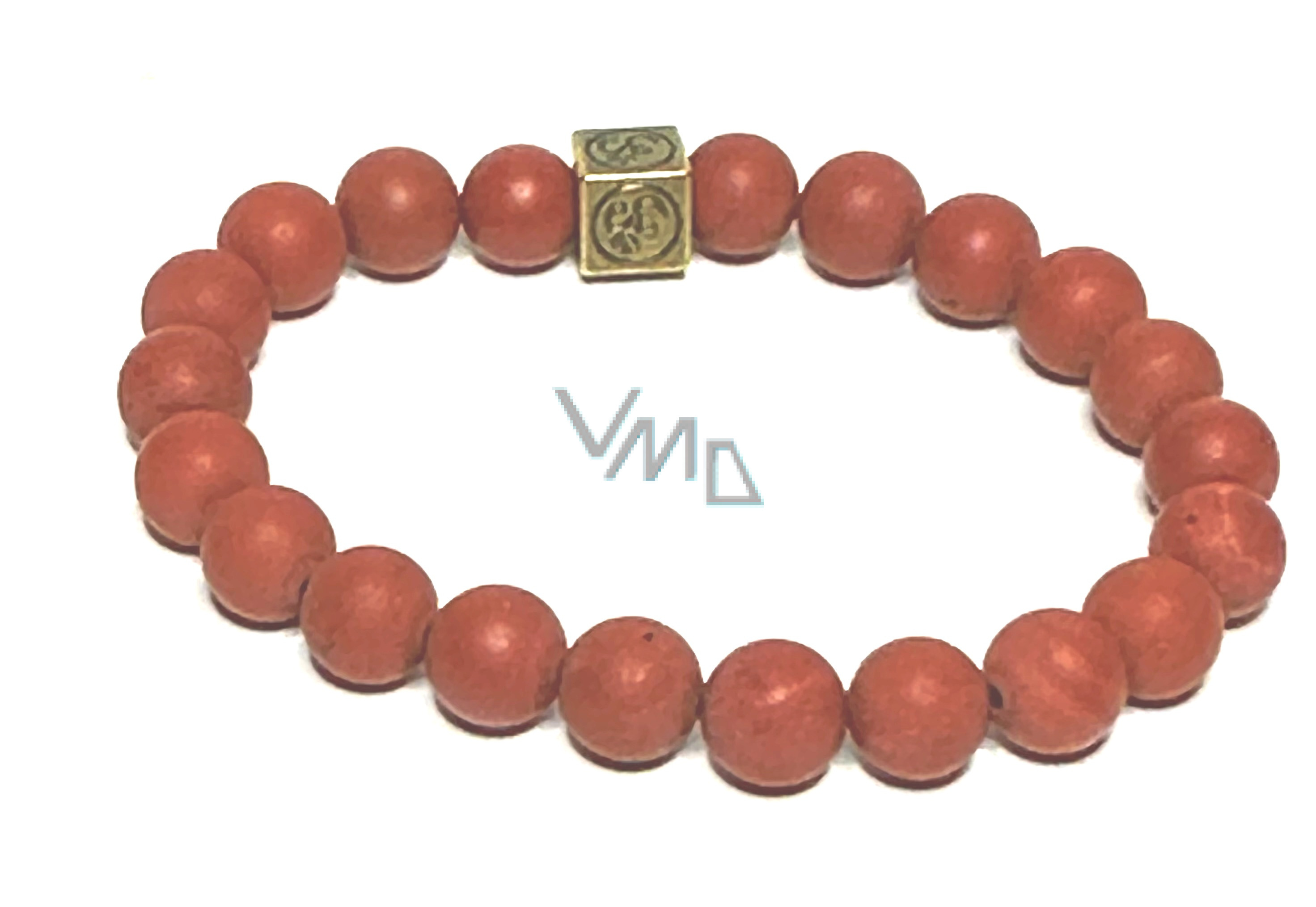 Jaspis červený mat s královskou mantrou Óm náramek elastický přírodní kámen, kulička 8 mm / 16 - 17 cm, kámen úplné péče