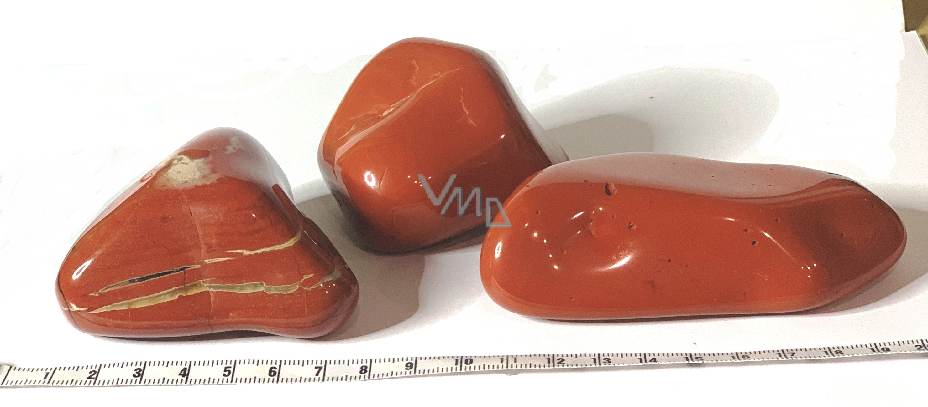 Unikátnost kamene: Pro jaspis červený jsou charakteristické červené odstíny, za nimiž stojí obsažené Oxidy železa. Atraktivitu často zvyšují bílé žilky křemene, které masitou červenou hmotu protkávají.