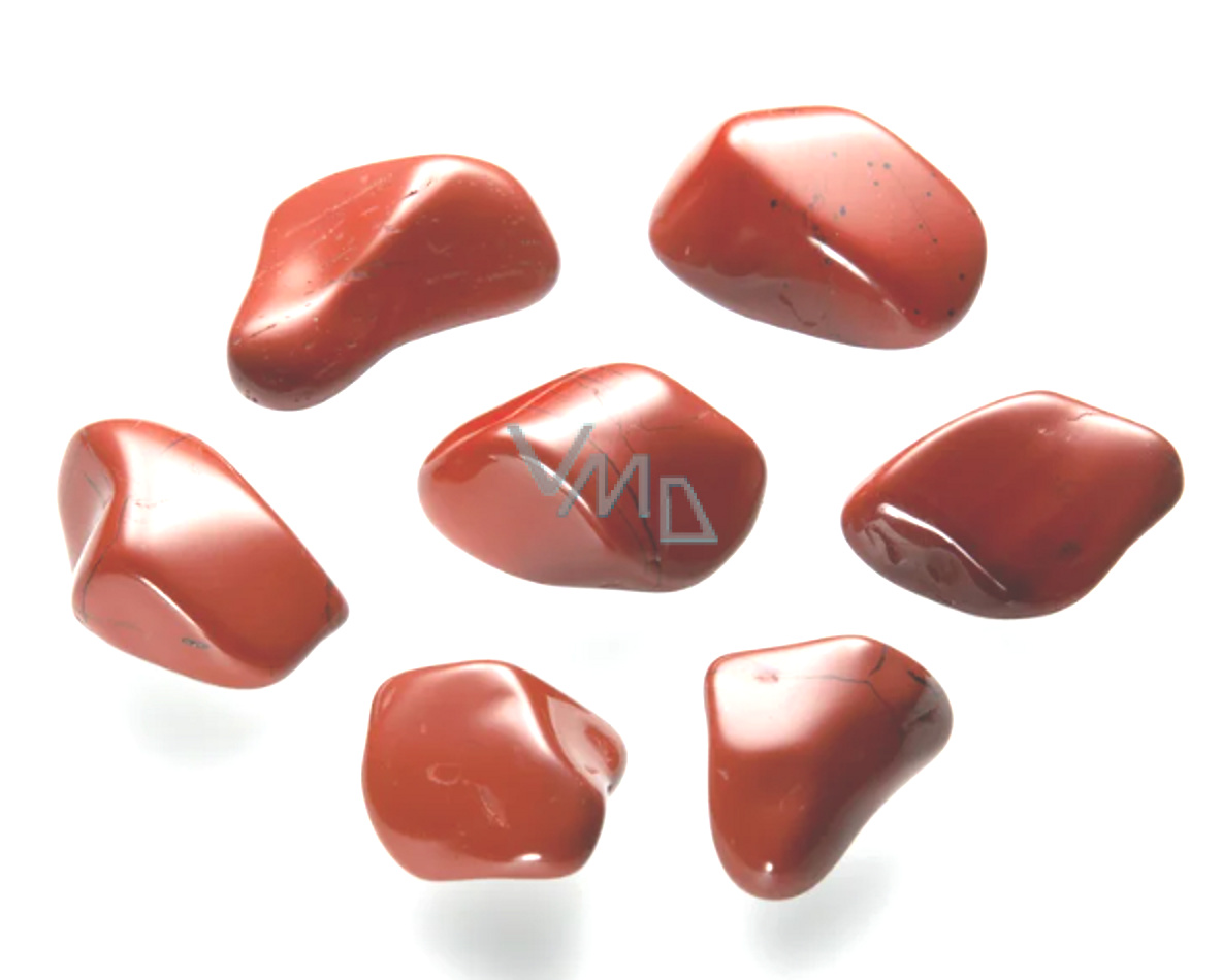 Unikátnost kamene: Pro jaspis červený jsou charakteristické červené odstíny, za nimiž stojí obsažené Oxidy železa. Atraktivitu často zvyšují bílé žilky křemene, které masitou červenou hmotu protkávají.