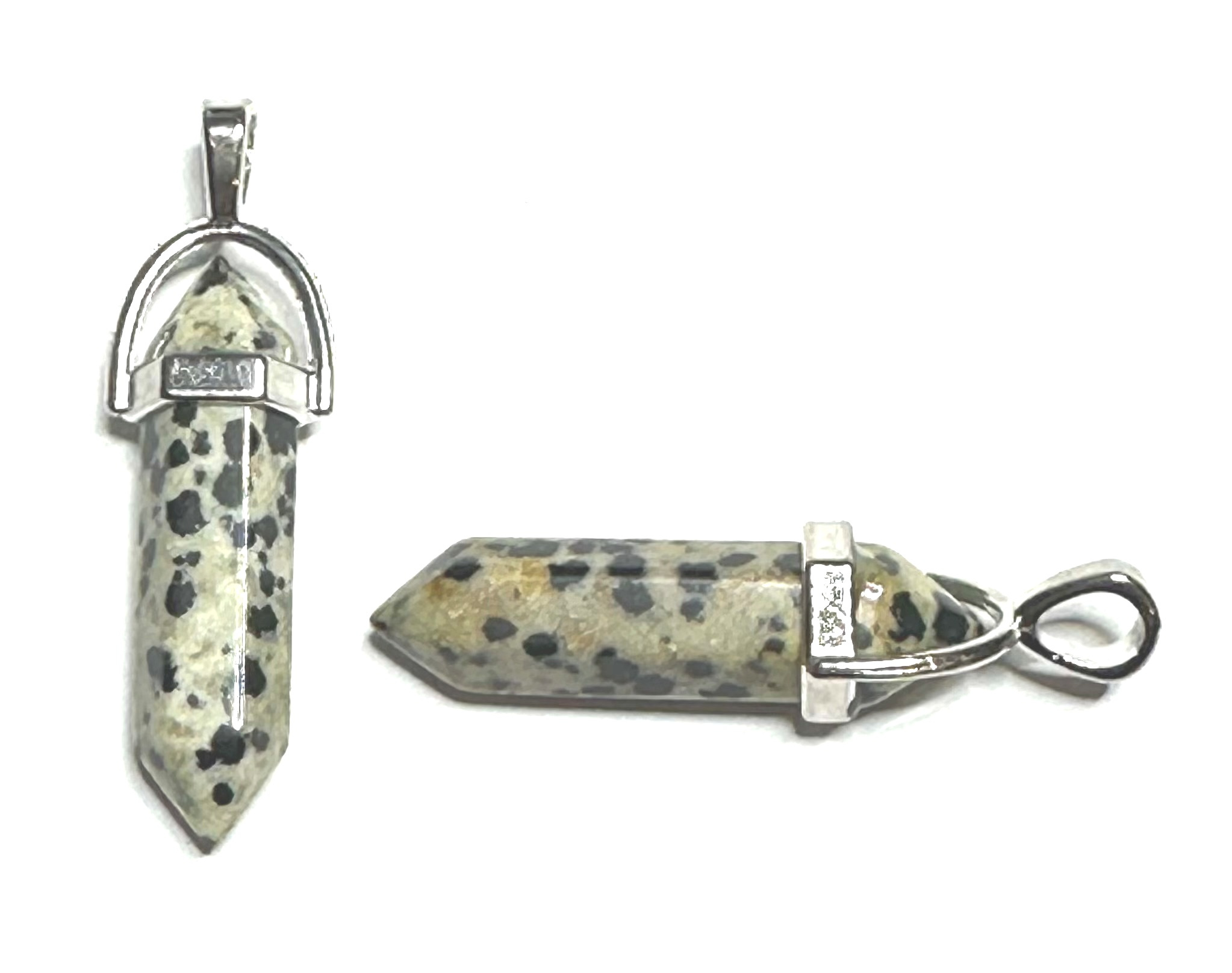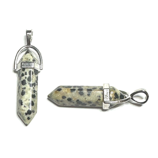 Jaspis Dalmatin kyvadlo šestihran přívěsek přírodní kámen 41 x 13 mm, kámen pozitivní energie