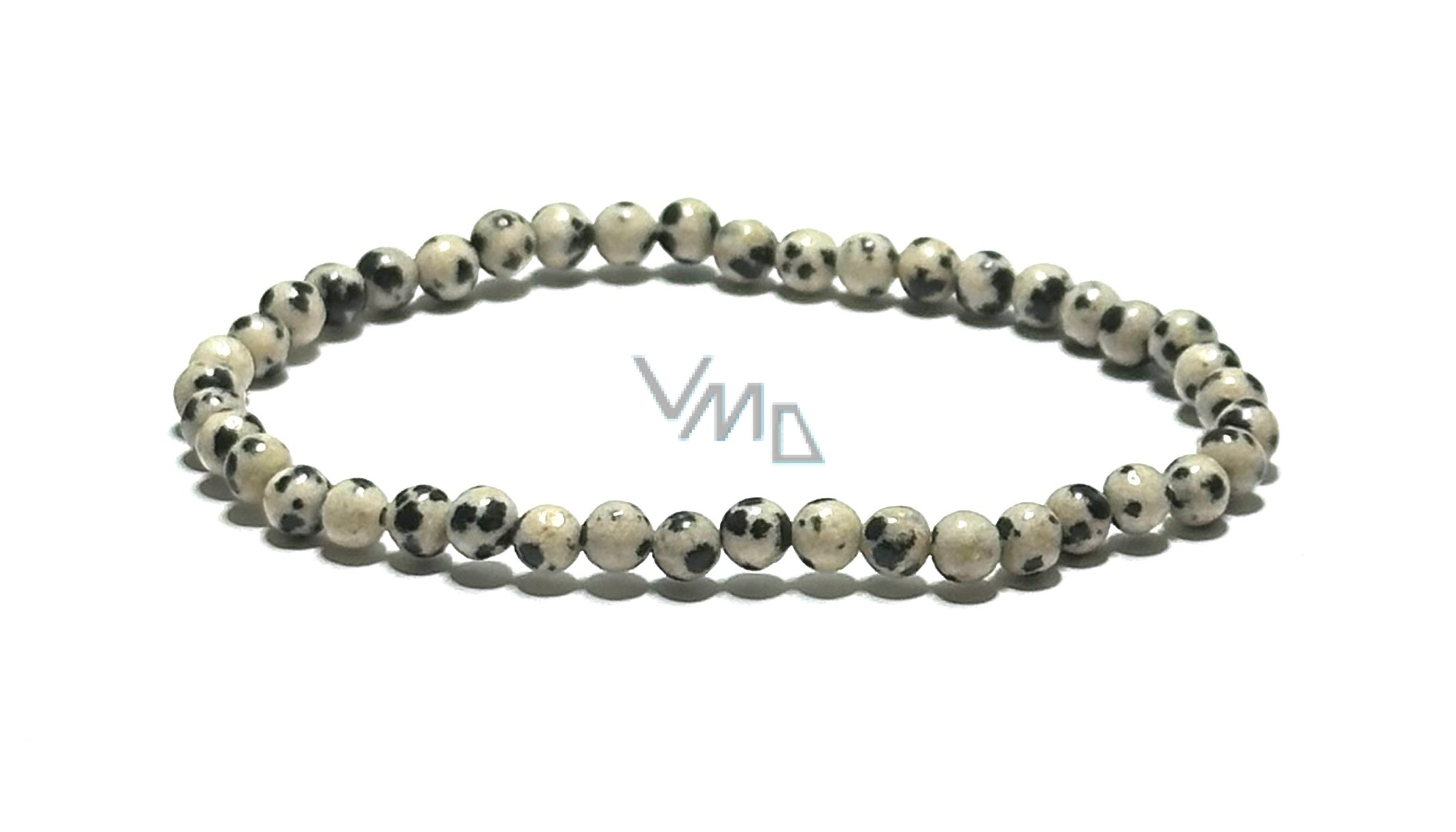 Jaspis Dalmatin náramek elastický přírodní kámen, kulička 4 mm / 19 cm, kámen pozitivní energie