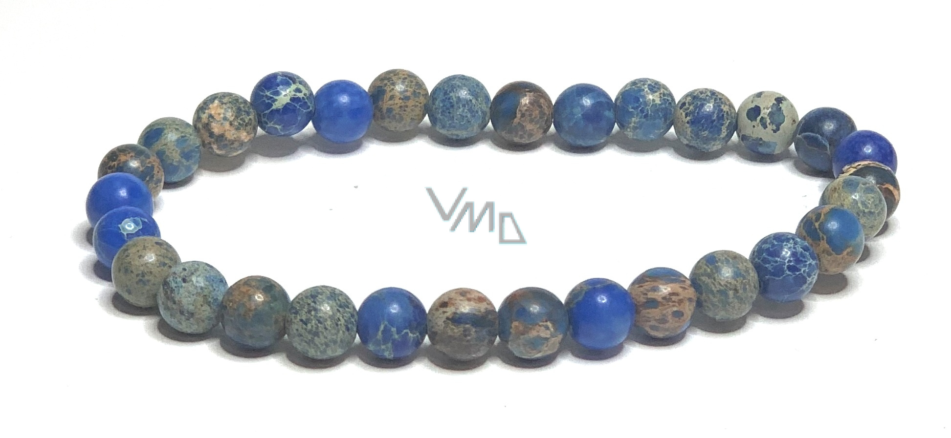 Jaspis / Regalit Imperiální mořský sediment modrý náramek elastický směsný minerál, kulička 6 mm / 16 - 17 cm