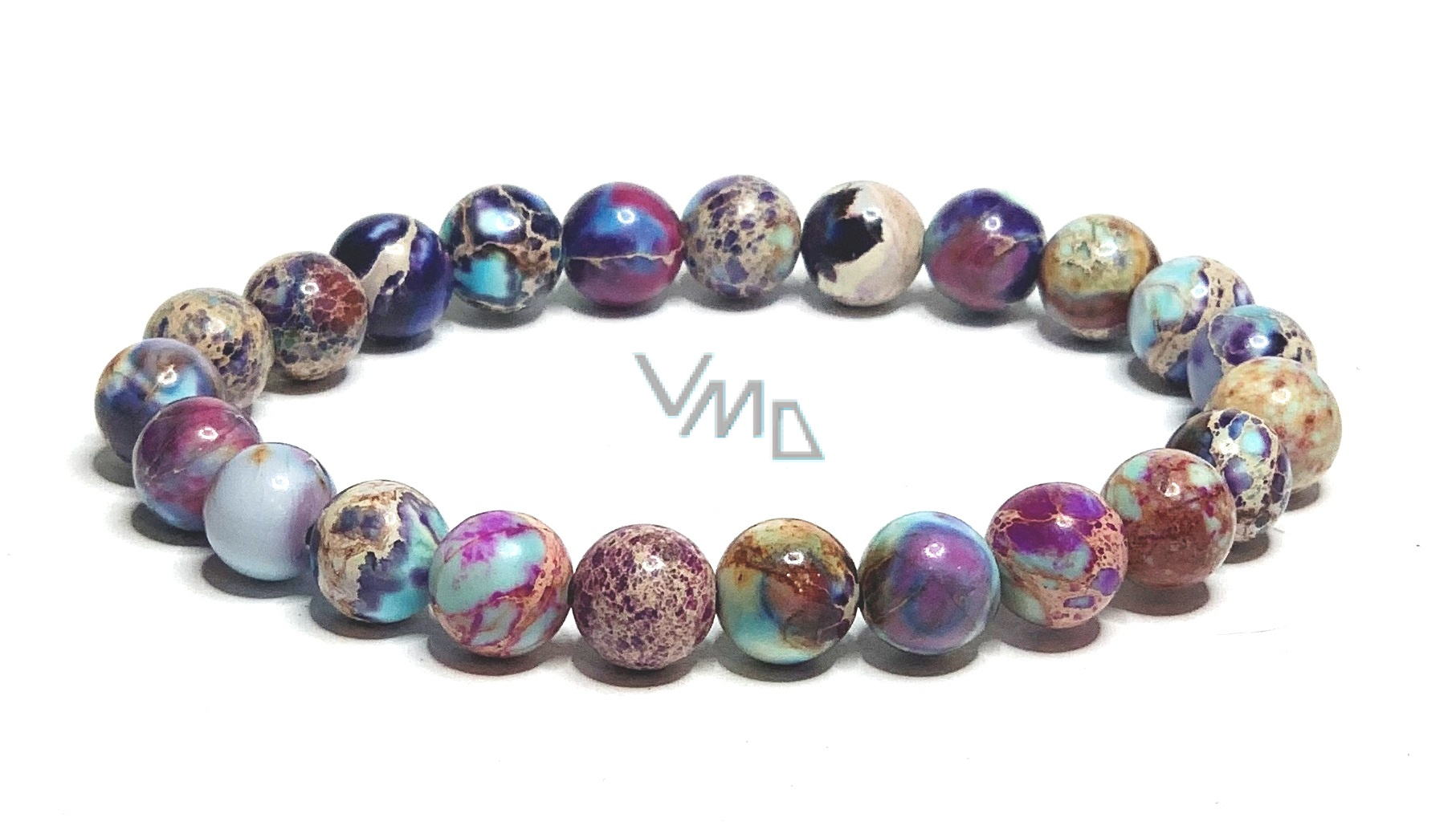 Jaspis / Regalit Imperiální mořský sediment tyrkysovo-fialový náramek elastický směsný minerál, kulička 8 mm / 16 - 17 cm