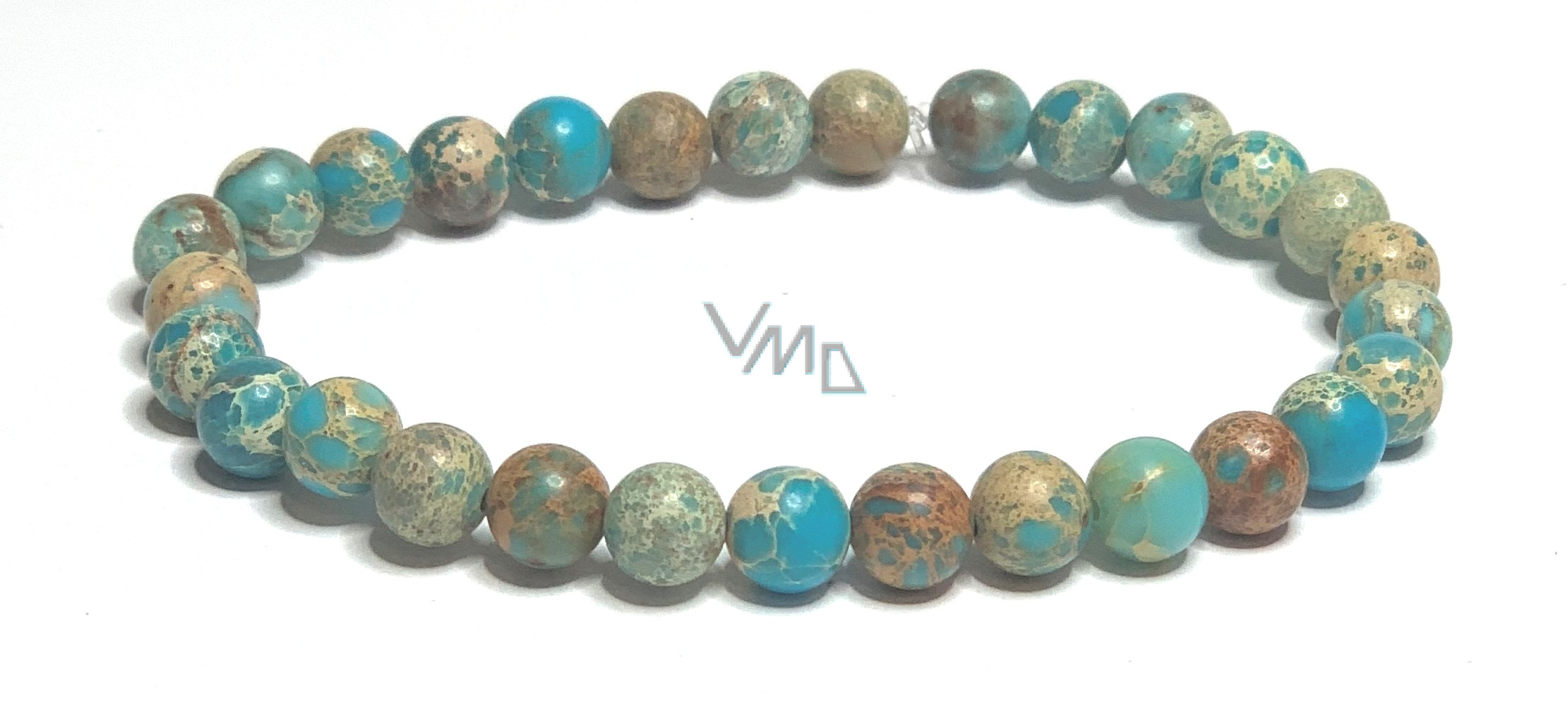 Jaspis / Regalit Imperiální mořský sediment tyrkysový náramek elastický směsný minerál, kulička 6 mm / 16 - 17 cm