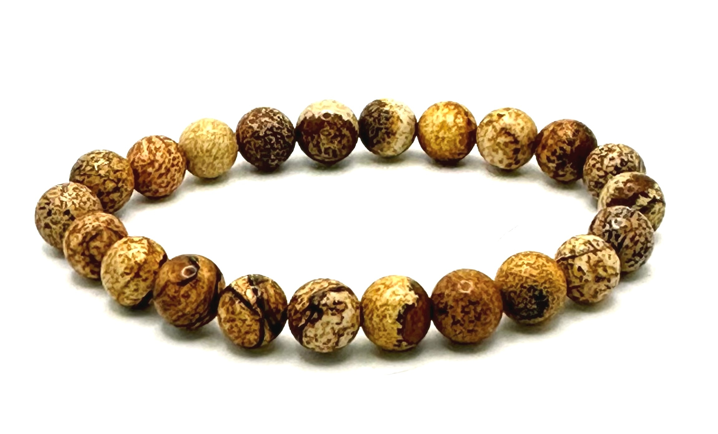 Jaspis obrázkový náramek elastický přírodní kámen, kulička 8 mm / 16 - 17 cm, kámen pozitivní energie
