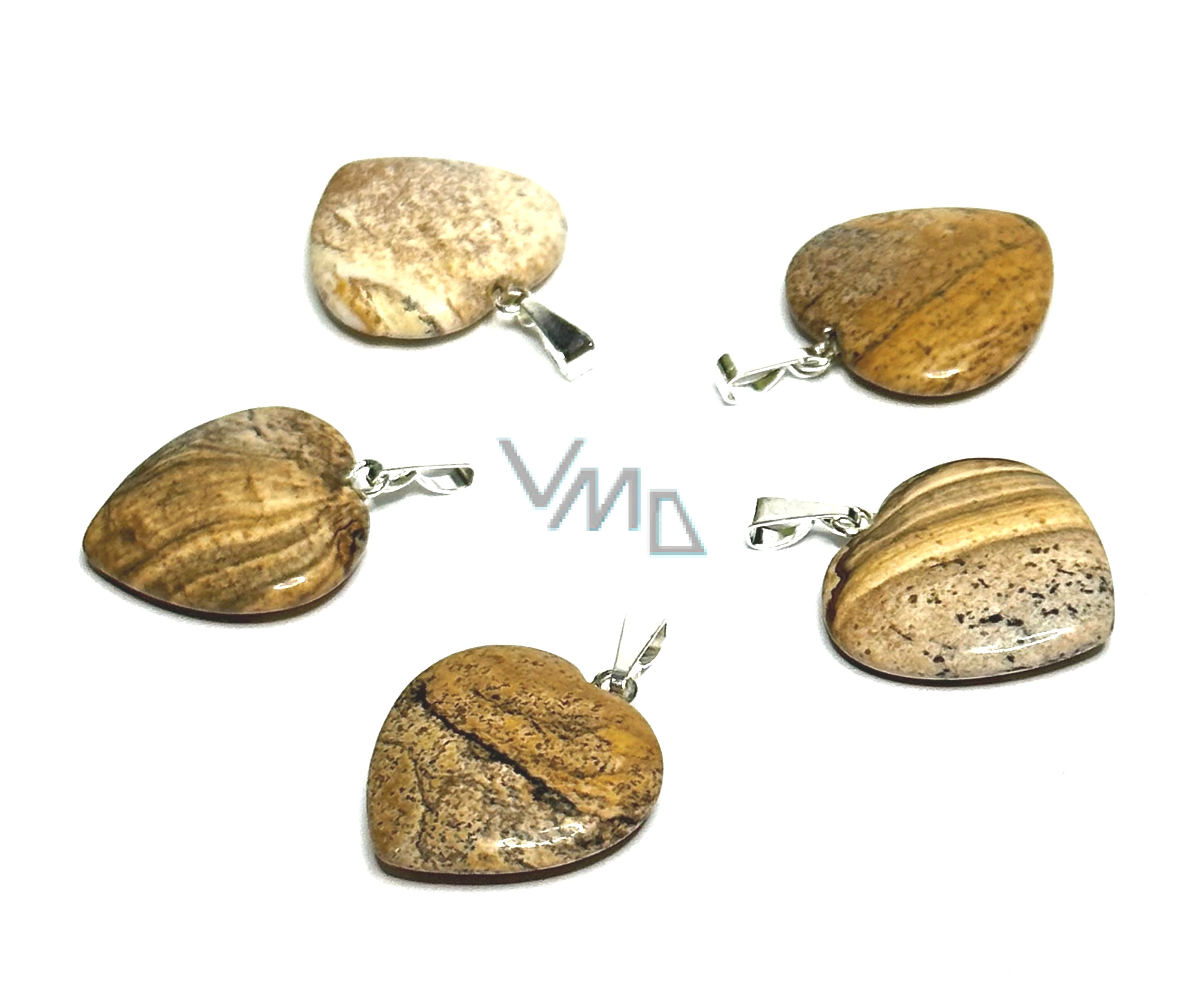 Jaspis obrázkový Srdce přívěsek přírodní kámen 20 mm, kámen pozitivní energie