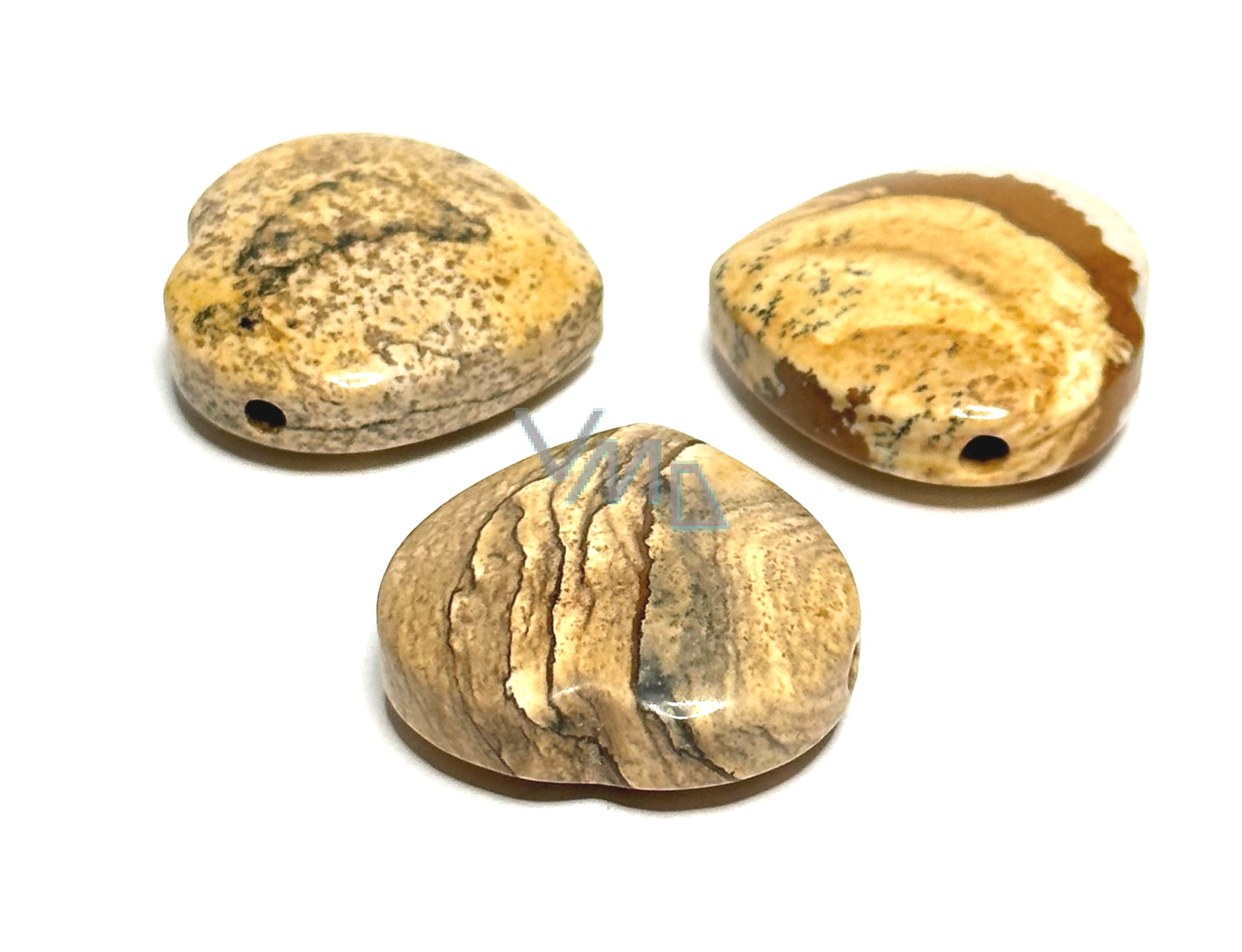 Jaspis obrázkový Srdce vrtané přívěsek přírodní kámen 30 mm, kámen pozitivní energie