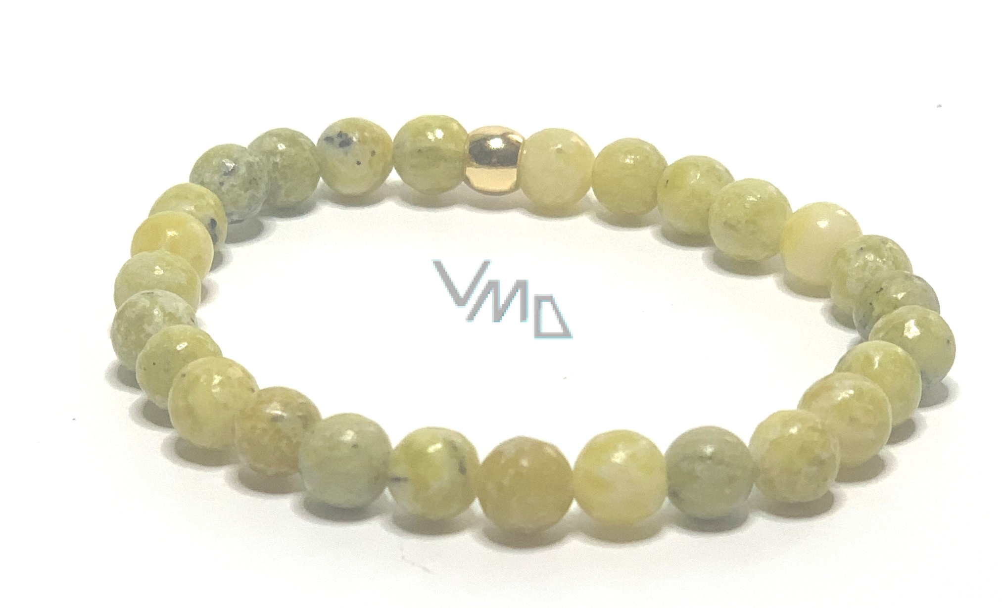 Jaspis žlutozelený náramek elastický přírodní kámen, kulička 6 mm / 16 - 17 cm, kámen pozitivní energie