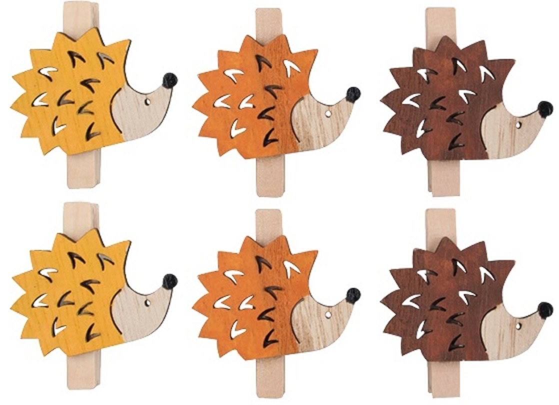 Ježci dřevění na kolíčku 3 cm 6 kusů
