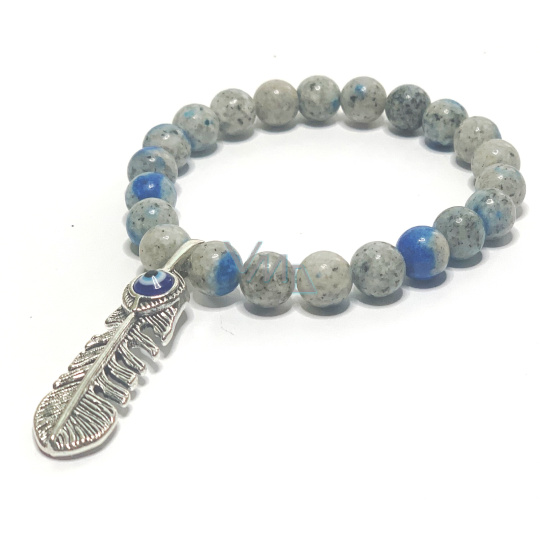 K2 Azurit v Granitu + Modré oko v peříčku náramek elastický přírodní kámen kulička 8 mm / 16 - 17 cm