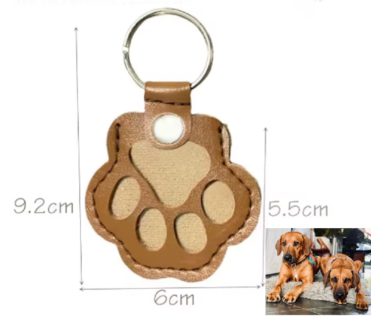 Klíčenka Tlapka – památka na vašeho mazlíčka, kterou máte stále u sebe, koženková, hnědá