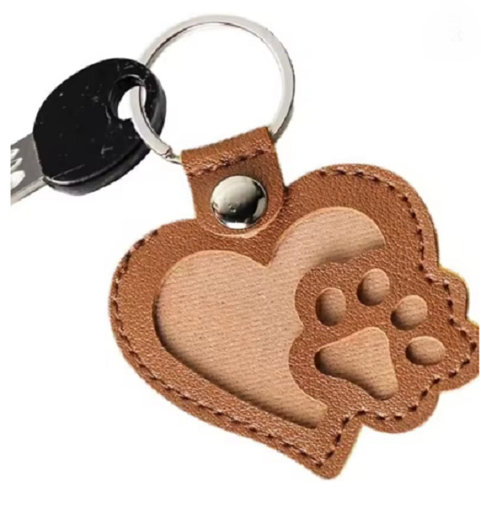 Klíčenka Tlapka se srdcem – památka na mazlíčka| koženková | hnědá