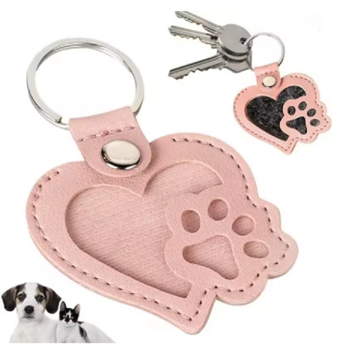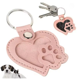 Klíčenka Tlapka se srdcem – památka na mazlíčka| koženková | růžová