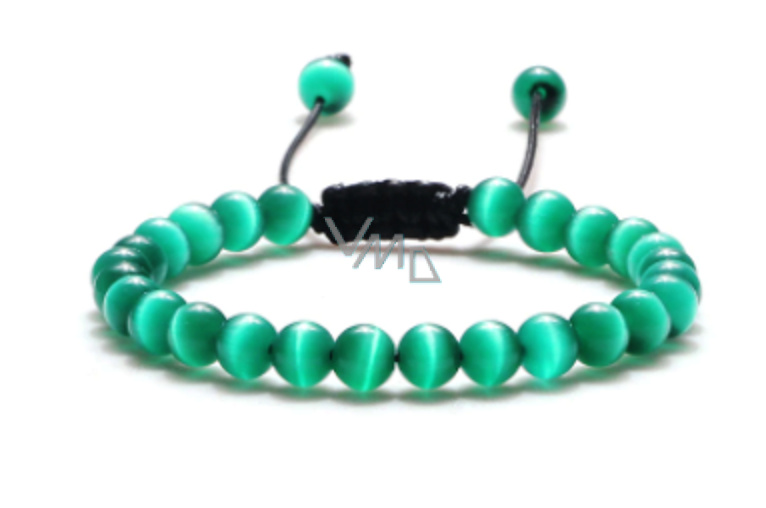 Kočičí oko zelený náramek přírodní kámen ručně pletený, nastavitelná velikost, kulička 6 mm
