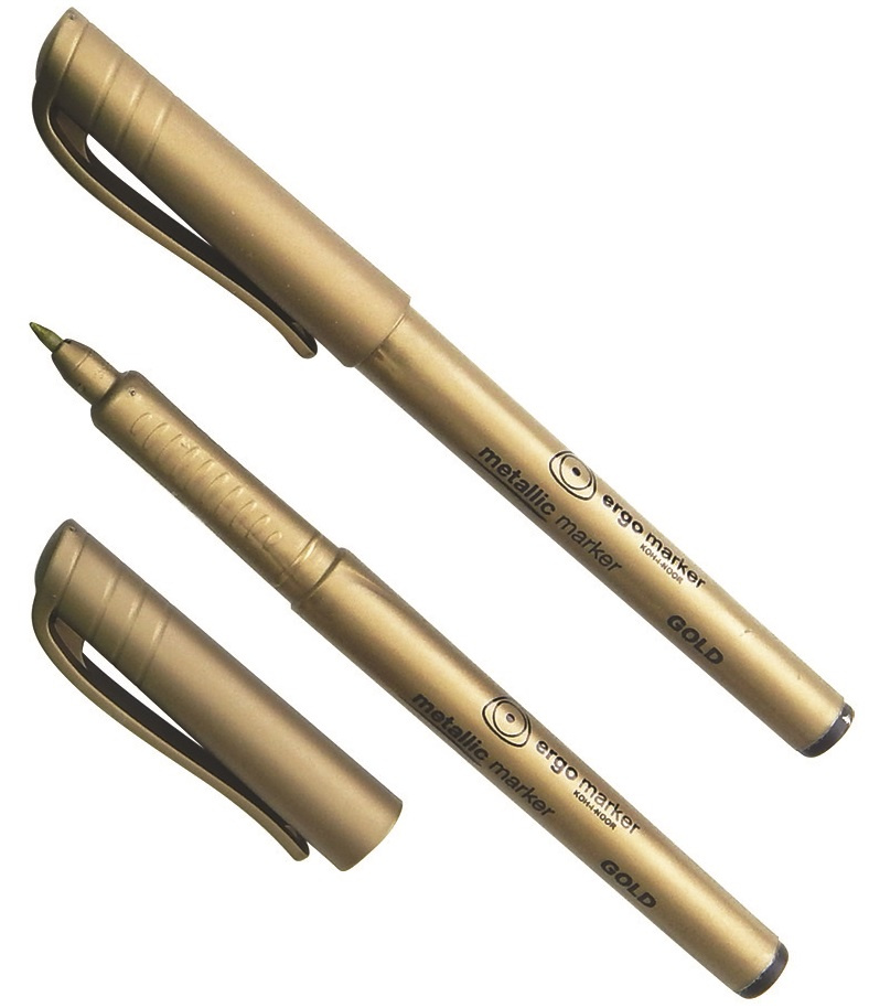 Permanentní metalický popisovač s vlákny naplněná inkoustem na bázi vody ve zlaté barvě. Stopa je odolná proti oděru. Lze použít na většinu povrchů: různé typy papíru i neporézní materiály, jako jsou kovy, sklo, porcelán, plasty, kůže, dřevo, beton, kámen a lepenka. Kulatý hrot nabízí šířku stopy 2 mm, délku stopy 500 m; vyrobeno z materiálů poskytujících odolnost proti vysychání po dobu nejméně 2 let.