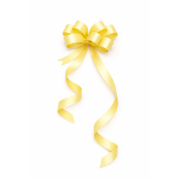 Světle žlutá stuha ke stahovací kokardě je detail, který dodá dárku čistý, svěží a vkusný vzhled.