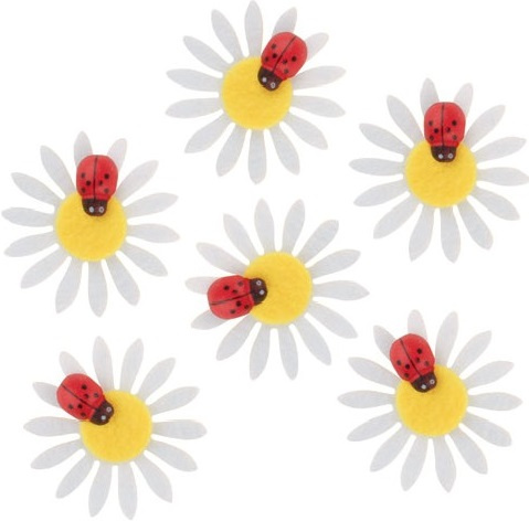 Kopretiny z filcu s beruškou 4 cm 6 kusů v sáčku