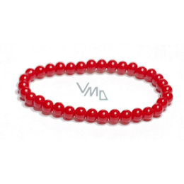 Korál červený náramek elastický přírodní kámen, kulička 6 mm / 16 - 17 cm